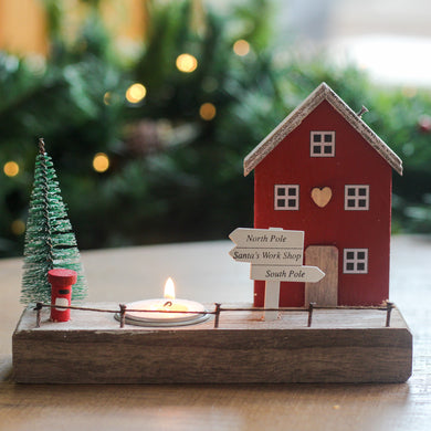 Wooden 'Holly Lane' Festive Street Ornament With Bottlebrush Trees