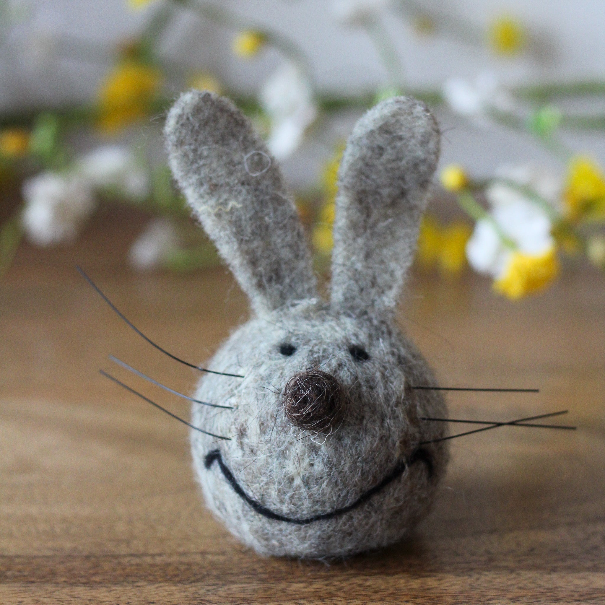 This adorable wool bunny is as unique as he is sweet. With a foam inner so he sits sturdily, his exterior is made from a soft brown wool and he's finished with whiskers and a cheerful little smile. A lovely addition to any Easter décor.