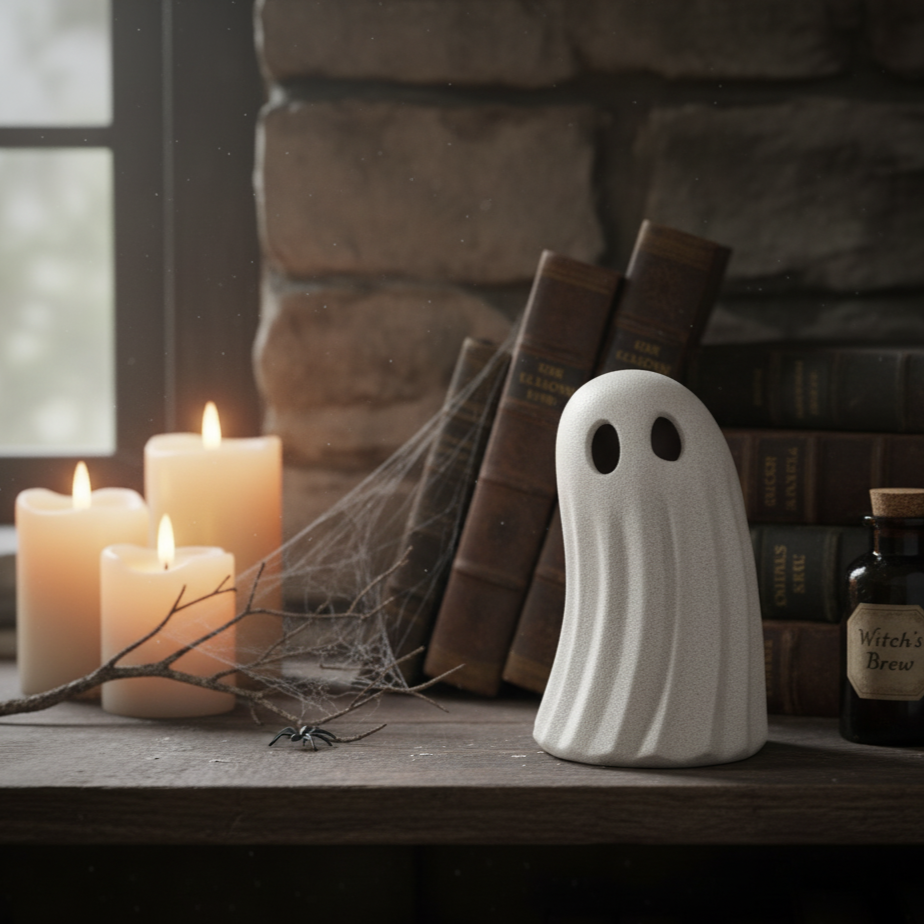 This large stoneware ghost figurine is simply spooktacular! Super sturdy, he stands tall and proud with a cut out underneath, meaning you ca simply light a tea light underneath for a stunningly eerie glow.
